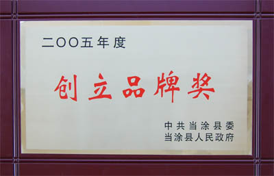 我公司由于2005年獲得了“安徽省名牌產(chǎn)品”和“安徽省著名商標(biāo)”兩項(xiàng)榮譽(yù),被縣委、縣政府評為“2005年度創(chuàng)立品牌獎”,兩項(xiàng)榮譽(yù)分別獲得現(xiàn)金10000元的獎勵!