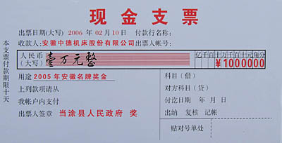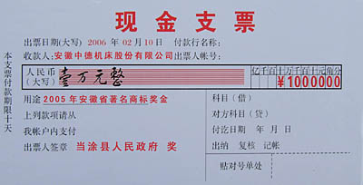 “中德機(jī)床”獲當(dāng)涂縣2005年度“創(chuàng)立品牌獎”