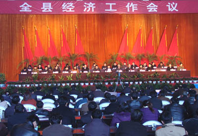 2006年2月10日上午,全縣經(jīng)濟(jì)工作會議在縣體育館隆重召開。這次全縣經(jīng)濟(jì)工作會議的主要任務(wù)是,全面貫徹落實(shí)中央和省、市經(jīng)濟(jì)工作會議和縣委十屆七次全體(擴(kuò)大)會議精神,認(rèn)真總結(jié)了2005年經(jīng)濟(jì)工作,表彰了各項(xiàng)先進(jìn),全面部署了2006年各項(xiàng)目標(biāo)任務(wù),進(jìn)一步統(tǒng)一全縣上下的思想認(rèn)識,搶抓機(jī)遇,扎實(shí)若干,努力實(shí)現(xiàn)全縣經(jīng)濟(jì)又快又好地發(fā)展,構(gòu)建和諧當(dāng)涂,為順利實(shí)施“十一五”規(guī)劃開好局、起好步。縣長操隆山作了全縣經(jīng)濟(jì)工作報(bào)告,縣委書記毛長江發(fā)表了重要講話。縣委、縣人大、縣政府、縣政協(xié)、縣紀(jì)委、縣人武部負(fù)責(zé)同志,縣委委員、候補(bǔ)委員,縣紀(jì)委委員,縣人大常委、政協(xié)常委,曾擔(dān)任縣級實(shí)職的離退休老干部,各工委書記,各鄉(xiāng)鎮(zhèn)黨委書記、人大主席,鄉(xiāng)鎮(zhèn)長和文書,各村(居委員)總支(支部)書記、主任和縣直各部、委、局、辦負(fù)責(zé)人、部分機(jī)關(guān)干部代表等共計(jì)2000多名干部職工參加了會議。
