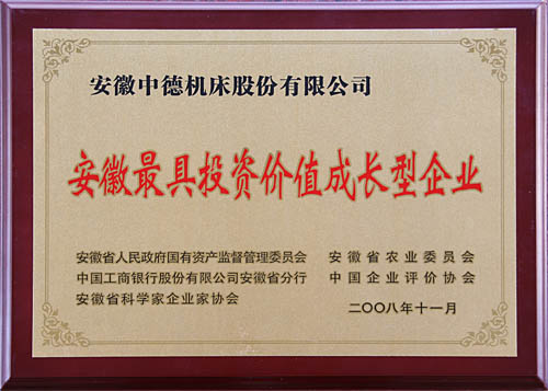 能夠進(jìn)入2008年安徽最具投資價(jià)值企業(yè)的評(píng)估百強(qiáng),是對企業(yè)各個(gè)方面的能力的權(quán)威肯定,因?yàn)樵u(píng)價(jià)結(jié)果將為各級(jí)政府決策提供參考依據(jù),為金融機(jī)構(gòu)、融資機(jī)構(gòu)的企業(yè)信貸決策提供參考依據(jù),為企業(yè)充分展示自身的成長能力、投資價(jià)值和戰(zhàn)略合作伙伴提供機(jī)會(huì)。此次進(jìn)入“2008安徽最具投資價(jià)值成長型企業(yè)百強(qiáng)榜”對于中德機(jī)床來說,意義深遠(yuǎn)。中德將在技術(shù)創(chuàng)新,開辟廣闊市場方面做進(jìn)一步的努力。