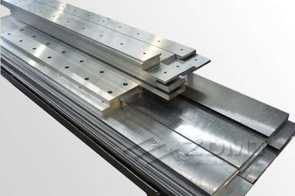 該刀片適用于液壓剪板機(jī),液壓剪板機(jī)的刀片一般有9CrSI、6CrW2Si、Cr12MoV等幾種材質(zhì)。